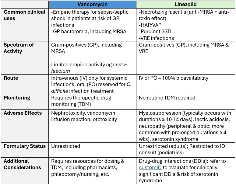 Table. Comparing anti-MRSA therapy (vancomycin and linezolid)