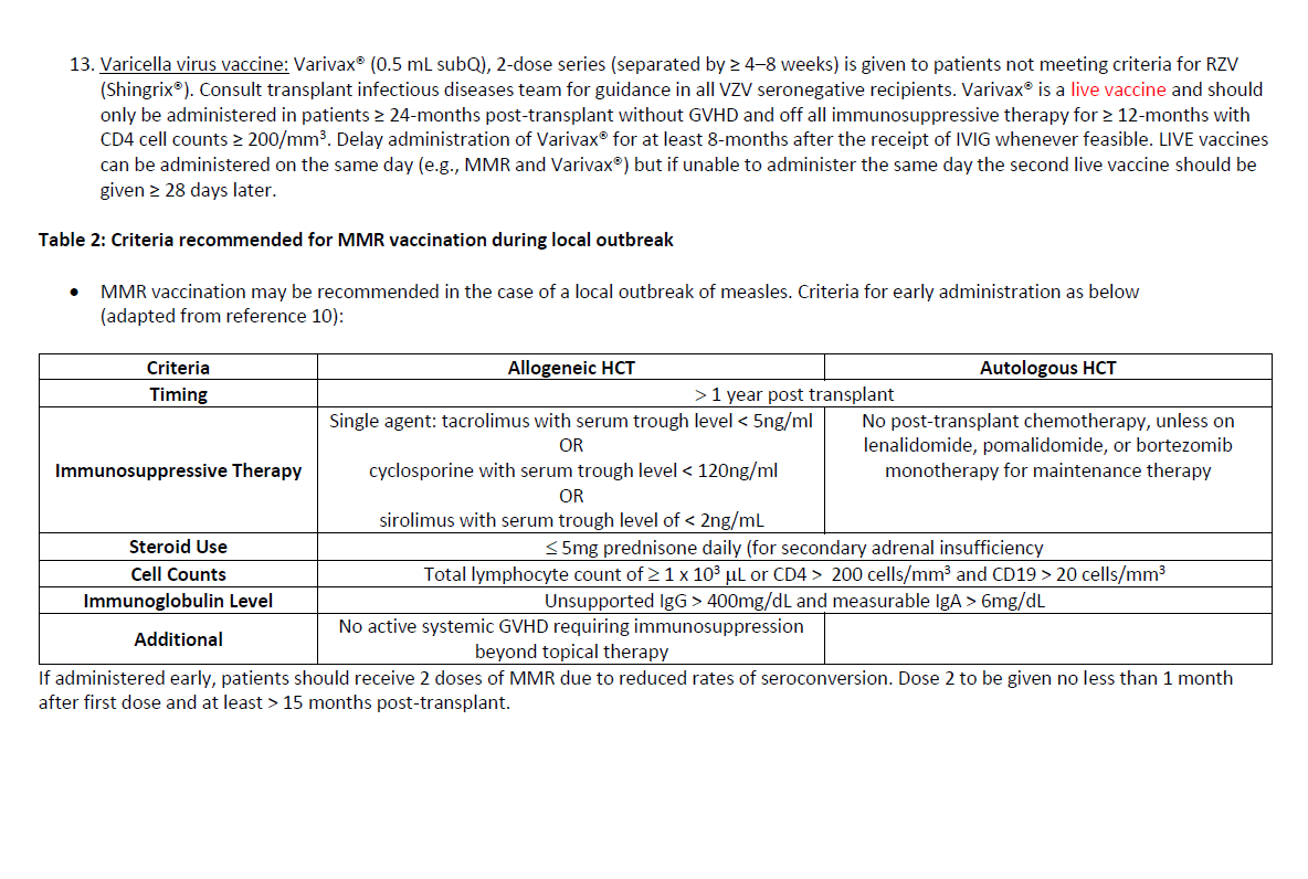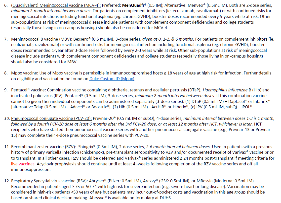 Duke Adult HCT Vaccination Guidelines